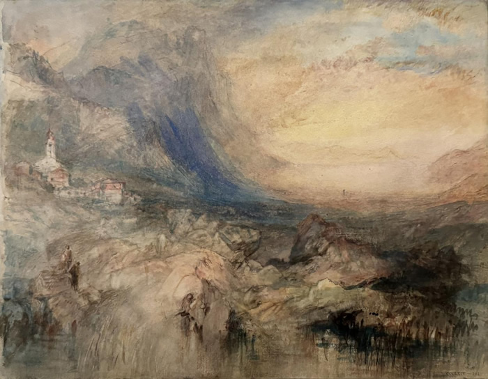 1802年,由于戰爭停歇,透納開始了心儀已久的歐洲之行。在17至19世紀的歐洲,貴族子弟流行一種“壯游”(Grand Tour)的生活方式。他們從倫敦出發,坐船跨越海峽,抵達法國巴黎,然后轉道瑞士,攀登阿爾卑斯山,再去拜訪羅馬、威尼斯,德國北部,最終回到英國,這樣的方式接近當今的文化游學。