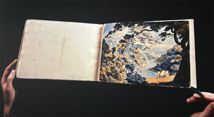 透納是一位永不停歇的旅游者,永遠在路上。在18世紀最后的十年中,透納的足跡遍及英格蘭湖區、威爾士和蘇格蘭等地。英國氤氳的氣候和景觀非常適合水彩的流動和透明感,透納每次出行都要拿上素描本和水彩進行寫生,他會用動物膠自制專業水彩紙,他的速寫本小到可以裝進自己的口袋,有的則是可以夾在腋下的大型畫本。