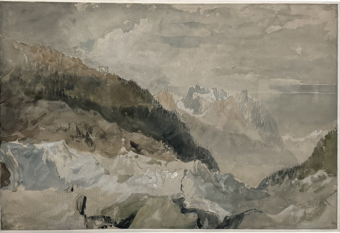 《蒙特維冰川上的布萊爾小屋》,1802年,紙上石墨、水彩和水粉