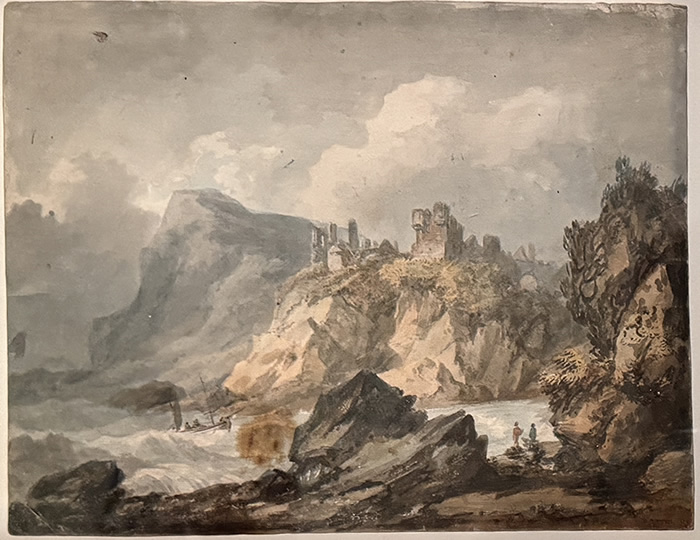 《懸崖上一座廢棄城堡的風景畫》,1792-93年,紙上石墨及水彩
