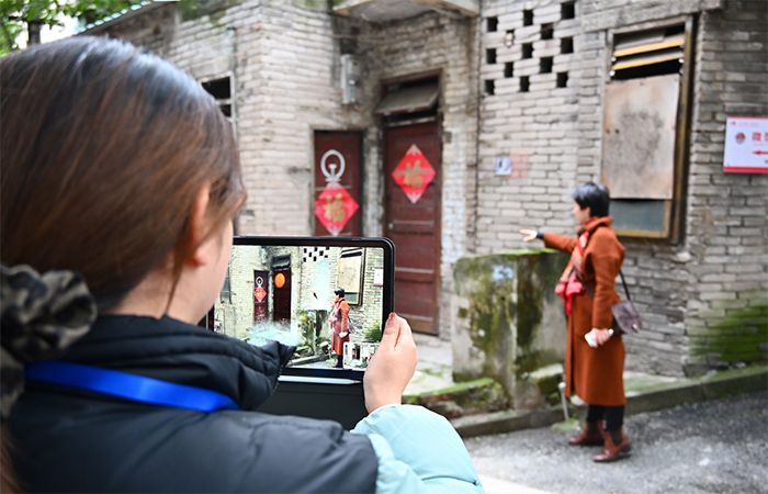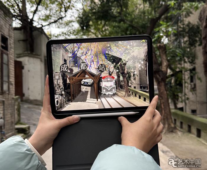 火車再進站——重慶市九龍坡區鐵路三村AR數字創意工作坊”是由新媒體藝術家林俊廷攜青年藝術家團隊創作,運用AR等數字技術,在鐵路三村社區的多個角落生成了一系列數字藝術作品。這些作品生動再現了成渝鐵路開通時的列車與相關文化場景,通過穿越歷史的方式,追溯社區集體與個人記憶,同時展望未來的可能性。