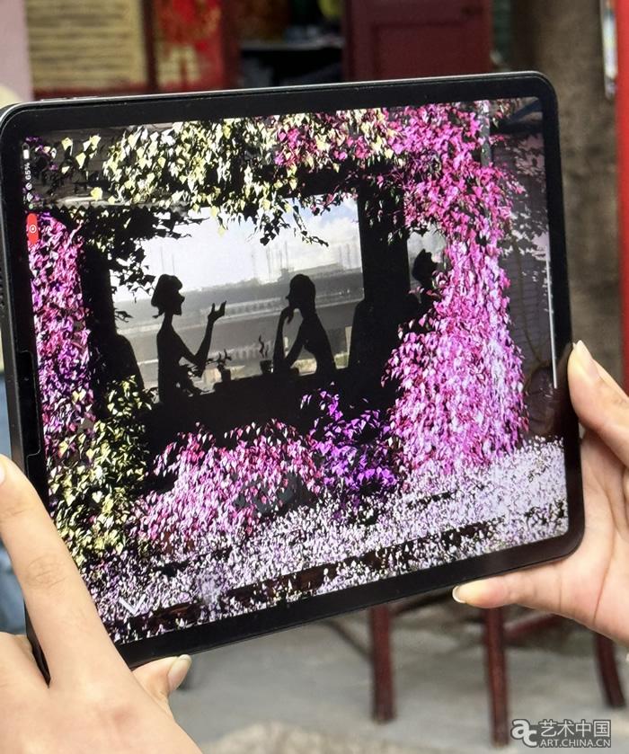 本次AR數字創意工作坊的作品巧妙地隱藏在社區的各個角落。當終端掃描二維碼后,那些平淡無奇的場景瞬間煥發出奇妙的視覺景觀。 例如,當掃描一處居民曾經的用水池時,屏幕中會呈現出干涸池底噴涌而出的汩汩瀑布;掃描一株高大的黃角樹,透明旋轉的火車齒輪與充滿生命力的植物相映成趣;而當對準某面居民墻壁掃描,屏幕中則會展現粉紅色三角梅花簇間,乘客在飛馳列車上欣賞風景的動人畫面...這些作品不僅賦予了普通空間新的藝術活力,也寓意鐵路三村未來如繁花流年般的美好愿景。