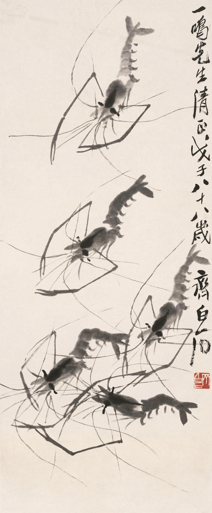 蝦圖 齊白石 81cm×33.5cm 1948 紙本墨筆 北京畫院藏