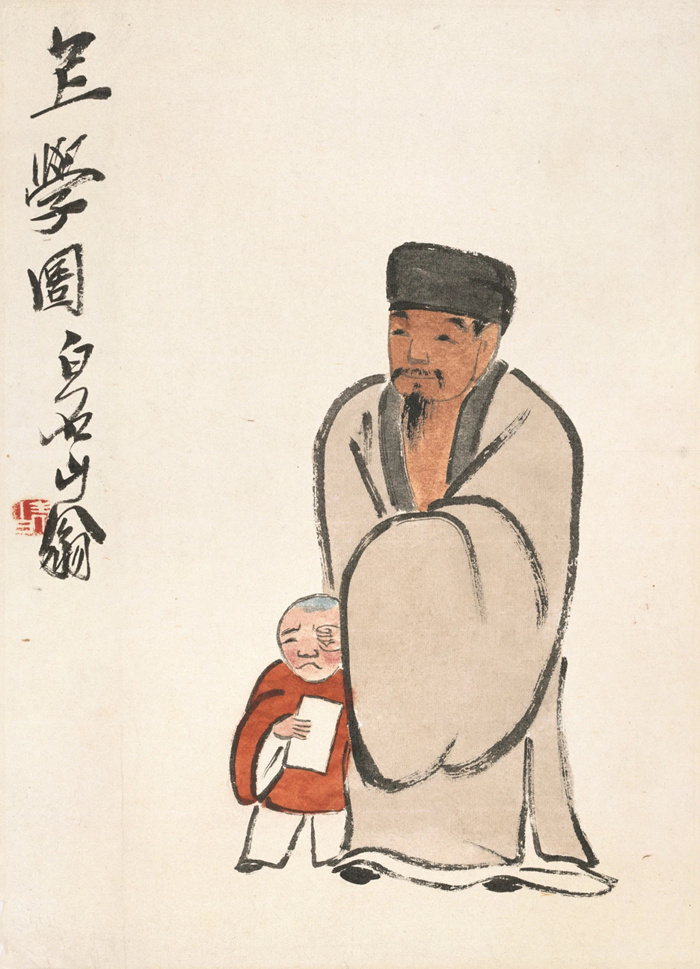 上學圖 齊白石 34.5cm×25cm 無年款 紙本設色 北京畫院藏