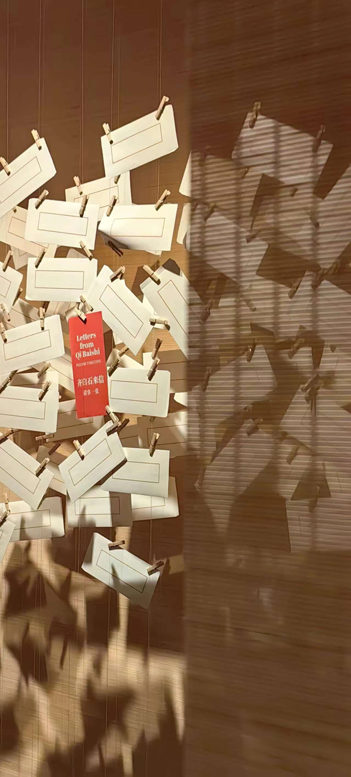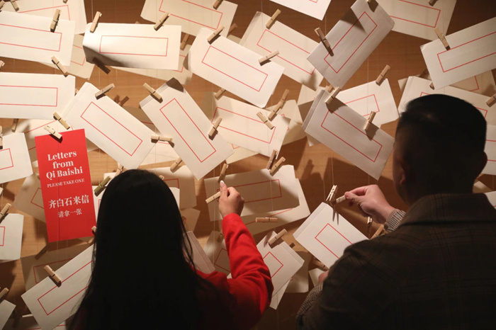 臨走前,觀眾可以從這里隨機抽取一張信封作為留念。此外,展覽還提供了精美箋紙和投稿箱,觀眾可以寫一封回信,與“白石老人”分享自己的觀展感受。
