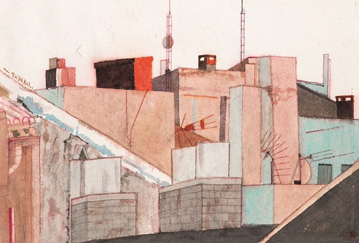 《歐洲街景之三》杜大愷 紙本水墨設色 66cm×97cm 2011年(圖片來源:清華大學藝術博物館)