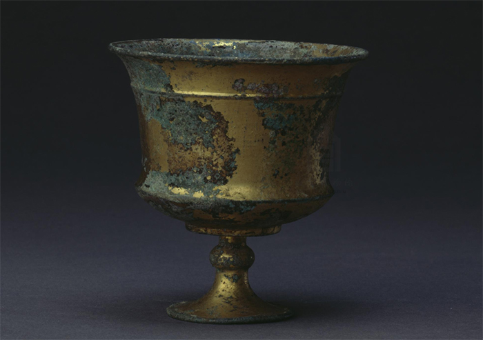 拿唐代金銀器來說,唐代金銀器的制作頗為考究,多數作品上飾有精湛的動物或花卉紋樣,但此杯通體簡潔,無繁復的紋飾,這在傳世的唐代金銀器中是不多見的。此杯器形明顯受到西方風格的影響。