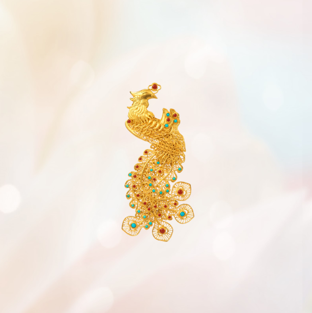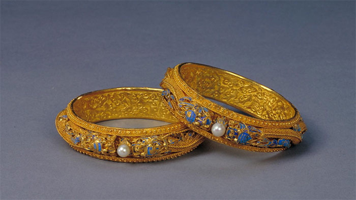 明清時期,制金技藝在繼承提煉此前數代工藝的基礎上繼續向前發展,達到新的高峰,至清代時掐絲琺瑯、點翠等技法廣泛應用,宮廷黃金制品尤為精美。