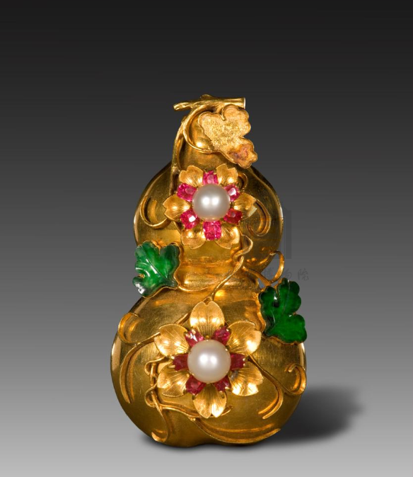金嵌珠石葫蘆式胸針,清(北京故宮博物院藏)
