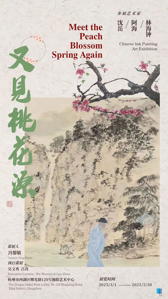 “又見桃花源——沈岳、阿海、林海鐘作品展”將于2025年3月1日(周六)在瀚陽藝術中心開幕?!坝忠娞一ㄔ础笔清査囆g中心上一個展覽“如是我心”的延續,也是其對“桃花源”這一主題的再次探索。
