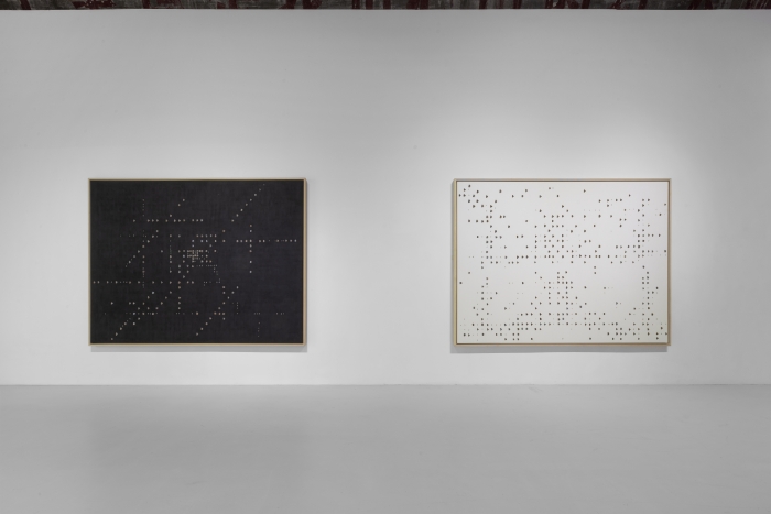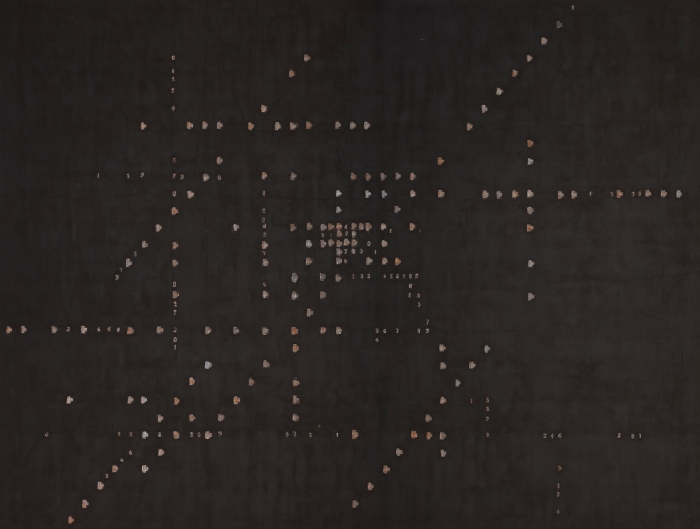 展覽名為“天壤間”,揭示出永恒的對立統一關系,而最終是人將天地連接起來,歸為一統。在西方思想體系里,人是介于神與動物、天使與魔鬼之間的一個層級,其間有明確的階序,形成一條長長的“存在巨鏈”。而“天行健,君子以自強不息;地勢坤,君子以厚德載物”,劉旭光的作品可以說是在與天地同行中完成的,“天地”是時空概念,他的作品圍繞生日、日期、地理方位這類信息展開,《衍場》系列作品還用河圖洛書方法計算推演,形成具有視覺性的邏輯圖像,也暗含著人類對不確定性的馴服,對命運之謎的叩問。