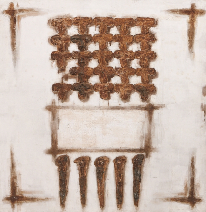 劉旭光 天地 200×205cm 1994年 墨、礦物質顏料、銹、骨膠、蛋清、畫布(圖片來源:東京畫廊+BTAP)