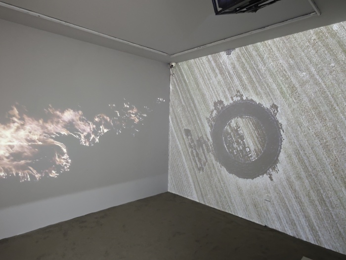 展覽現場,劉旭光的《炎帝的怒火》影像,2019年,時長2分28秒