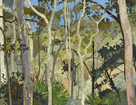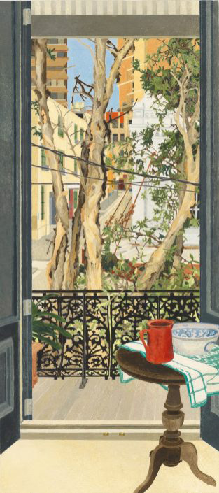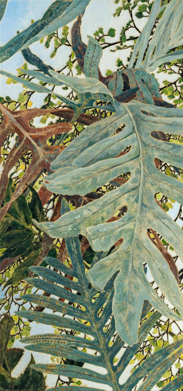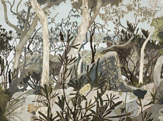 克雷西達?坎貝爾 (Cressida Campbell) 是澳大利亞最杰出的當代繪畫和版畫藝術家之一。40 多年來,這位居住在悉尼的藝術家將周圍日常環境的所見轉化彩繪木版畫??藏悹査苄蕾p和研究日本浮世繪木版畫家,她從浮世繪藝術家那里獲得了非凡的構圖感,尤其是在她的許多“透過窗戶看”的作品中。她喜歡用用細毛筆作畫在不同的木版畫表現每種顏色,這些因素使得她的畫面具有鮮明的空間層次感,坎貝爾筆下描繪的樹木和灌木姿態優雅舒展,不同枝干樹葉形態各異,在柔韌和堅硬中各自充溢著充滿生命的張力,她以赭色、土黃色等大地色和橄欖綠、灰綠、灰色等色系細膩的呈現出澳洲植物特有的干燥感和靜默感。