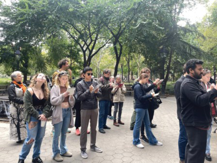 “華盛頓廣場公園樹木奇觀”是一項生態藝術計劃,該計劃旨在通過一項頌揚該地區生態的研究來展現大自然的奇跡。該地區位于華盛頓廣場公園的西北角,一棵英國榆樹已經生長了 300 多年。這棵樹是當地視覺藝術家克里斯汀?瓊斯和城市林務員喬治亞?西爾維拉?西曼斯發起的一項倡議的主題。過去三年來,兩人合作在春季和秋季的每個星期日在英國榆樹的底部舉辦公共繪畫活動。自開始以來,成千上萬的公園游客或路人都停下來仰望這棵樹,驚嘆不已,并在樹下對榆樹進行寫生畫畫。公共繪畫課每節課都由一位藝術家主持,藝術家與參與者分享繪畫技巧來激發他們的繪畫靈感。這些課程已經變得很受歡迎,正如有關資料顯示:“平均有 200 多人停下來觀察這棵樹,超過 50 人停下來畫畫?!?/p>