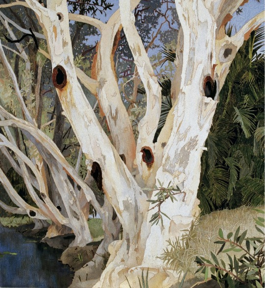 許多當代藝術家以繪畫、版畫、數字藝術等各種藝術媒介方式來表現人類與樹木交織關系的深厚知識中分享故事。例如,艾瑪?哈沃思(Emma Haworth)細膩描繪都市四季的樹木景致;克雷西達?坎貝爾(Cressida Campbell)以版畫展現澳洲植被的風土特色;莎倫?菲爾德(Sharon Field)通過“每日繪畫”記錄植物生命以呼應氣候變化;蒂姆?諾爾斯(timknowles)以裝置留存了各種樹木在微風中搖曳時的不同畫痕;凱蒂?霍爾頓(Katie Holten)則用樹木字母書籍探索人與自然溝通的方式。亞歷克斯?勒吉盧(Alex Le Guillou)運用數字技術呈現塔斯馬尼亞古樹的生態軌跡;這些藝術實踐彰顯了樹木在藝術中的獨特價值,傳遞出自然之美,更承載著文化記憶,并引發人們對生態環境的思考。