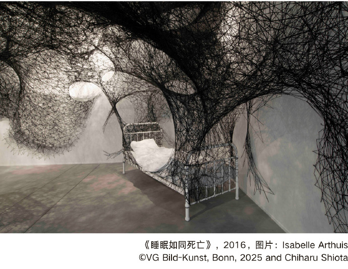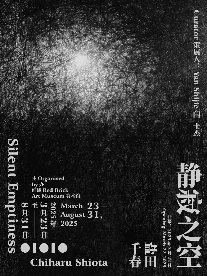 鹽田千春(Chiharu Shiota)大型個展“靜寂之空”(Silent Emptiness),藝術家根據紅磚美術館的空間與環境,挖掘并使用東方元素與在地材料,創作出一系列全新特定場域裝置。此次展覽以她獨特的東方哲思與跨文化經驗為脈絡,將東方哲學中的“空”轉化為可觸可感的視覺沉思,并在鹽田千春的藝術生涯中尋找新的坐標。