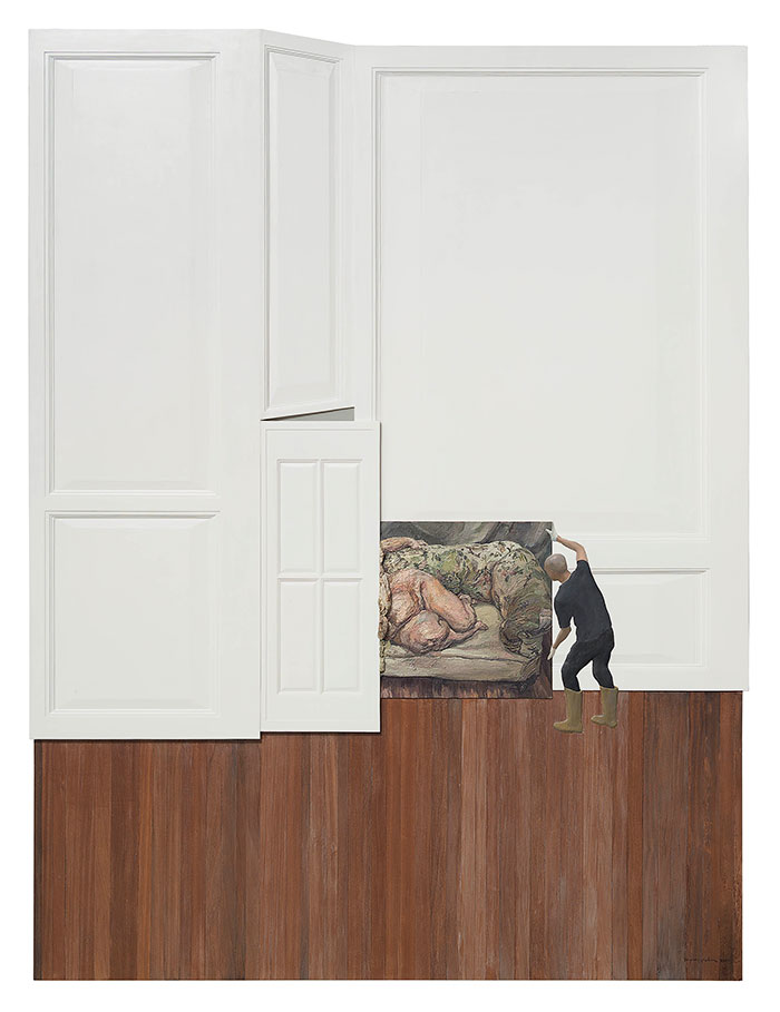 黃一山《搬沙發》,板上綜合材料,240×180cm,2019?藝術家與新氧藝O2art