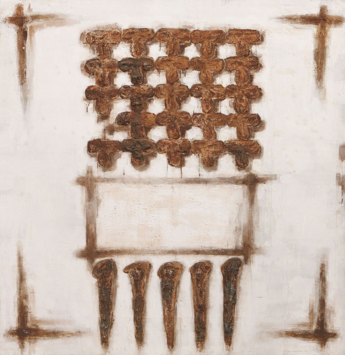 劉旭光,天地,200×205cm,1994年,墨、礦物質顏料、銹、骨膠、蛋清、畫布(圖片來源:東京畫廊+BTAP)