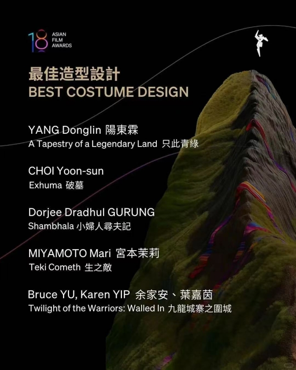 2025年1月10日,第18屆亞洲電影大獎在中國香港公布入圍名單。由陽東霖擔任造型設計的電影《只此青綠》榮獲提名最佳造型設計。