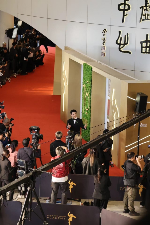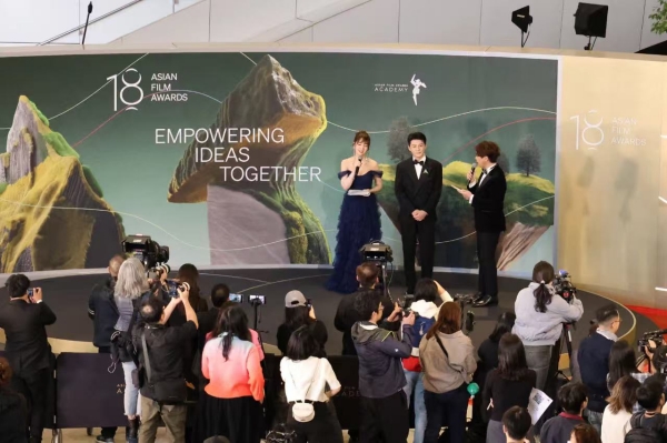 3月16日晚,第18屆亞洲電影大獎頒獎典禮在香港戲曲中心舉行,陽東霖受邀攜團隊成員吳少華出席本次活動。