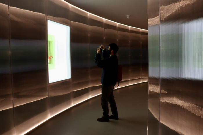《另一個你》(2024)是展覽中最具未來主義色彩的作品。這件融合了人工智能與生物傳感技術的裝置,能夠捕捉觀眾的生理數據,并將其轉化為視覺和嗅覺信號。當觀眾走近作品時,會觸發一系列微妙的變化:燈光閃爍、氣味釋放、聲音變化,仿佛與某個未知的生命體展開對話。