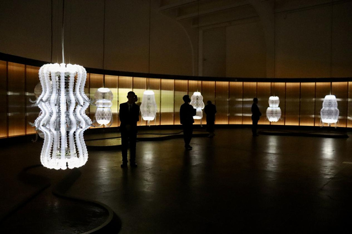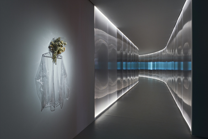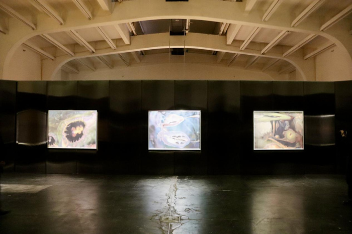 展覽現場的空間設計本身就是一件宏大的裝置作品。策展團隊將展廳改造成類似太空站或生物實驗室的環境,白色的隔離簾將空間分割成多個區域,既暗示了科技時代的隔離狀態,又強調了不同生命形式之間的互聯性。特別值得一提的是,展覽采用了創新的空氣循環系統,使藝術家創造的各種氣味能夠在空間中形成獨特的"嗅覺景觀"。