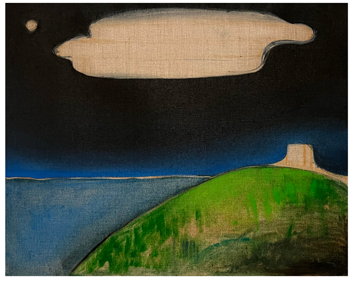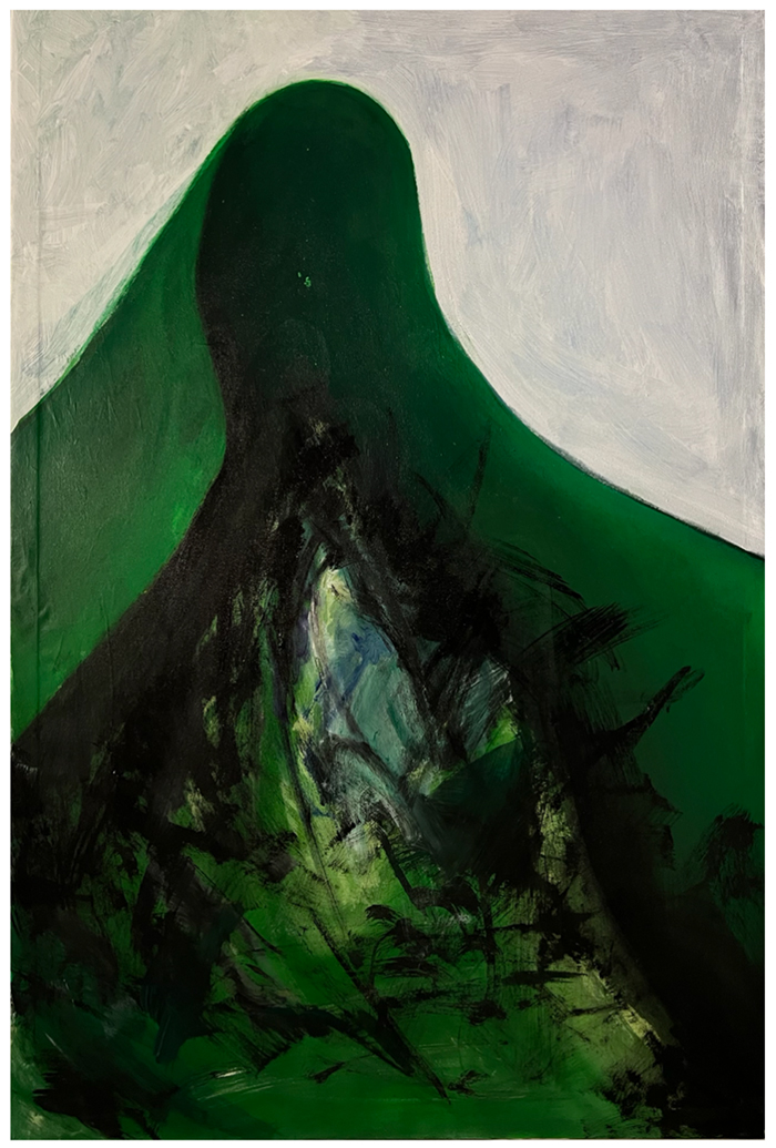然而,回到繪畫,豆豆發現其更貼近本能,可以更直接地探討一些更根本的、源自內心深處的東西。這種哲學探索延伸為她作品中的“心靈風景”系列。這些作品以風景為結構,但其內核并非描繪自然,而是將風景作為心理的投射面——一種中介狀態。她將之類比為量子中的“疊加態”——尚未被測量前的多重可能性狀態。在這些作品中,視覺不再只是看到物體,而是一種經驗的顯現。