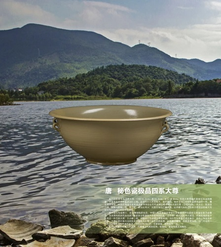直徑為36.2公分的越窯秘色瓷四系大(尊)盂,絕對是少見的青瓷精品。此藏品其體形之大,工藝之精美,品相之完好,盡顯大唐越窯風采,國內外極其罕見,被視作越窯青瓷濫觴,國寶級藏品。陳國楨當時以一幢別墅的價格在杭州古玩市場淘得。