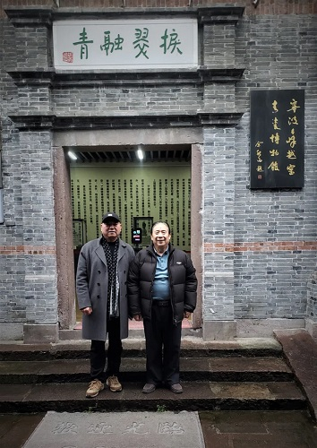 作者與陳國楨先生在寧波千峰越窯青瓷博物館門口合影