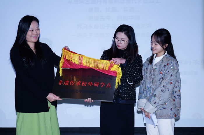 上海工藝美術職業學院終生教育管理辦公室吳琰主任為蘇寧藝術館授牌“非遺傳承校外研學點”