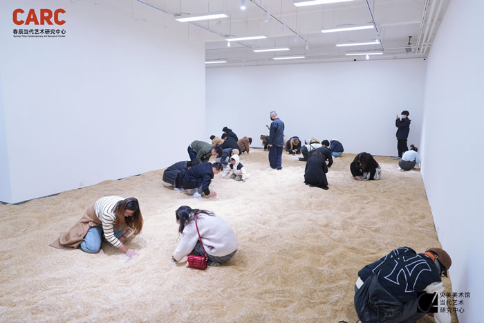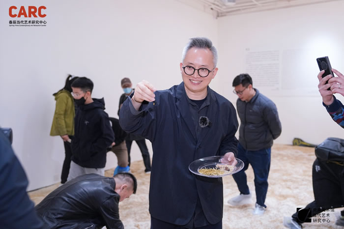 “金子就是金子,米就是米,但是在藝術空間成為現場發生的行為,就有成了公共藝術項目。為什么開幕這么多人來,我們捫心自問。”本次展覽的策展人王春辰在開幕時如是說到,他指出,展覽的一個重大意義在于探索社會介入藝術的狀態,因為在當下,藝術并非單向地去試圖用觀念去影響、干預社會,而是與社會共存,社會參與將成為作品的組成部分,影響甚至于延伸作品的意義,這一過程充滿不確定性,但最終這種共存的狀態會成為社會共性與時代問題的雙重反映,這一命題在今天的藝術世界中尤為重要,需要持續的討論與研究。