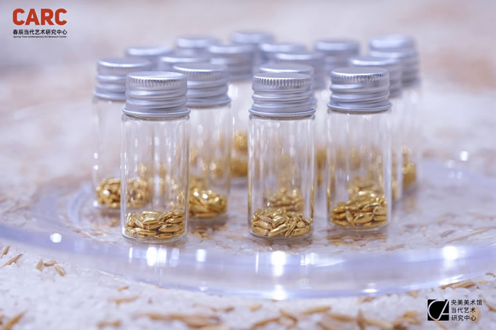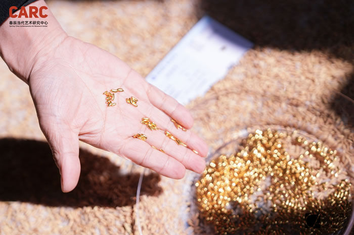 1000粒由千足金打造的黃金米粒即將被撒入展廳