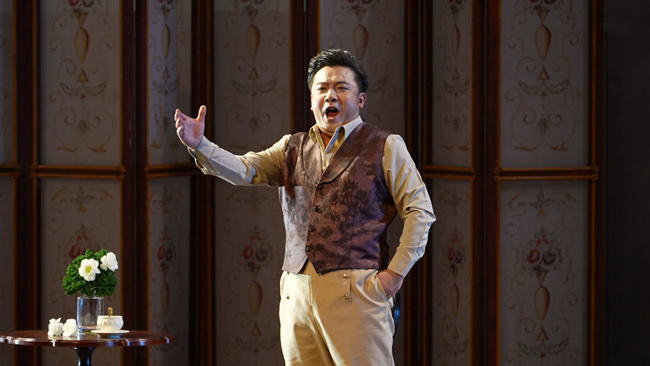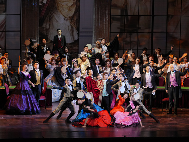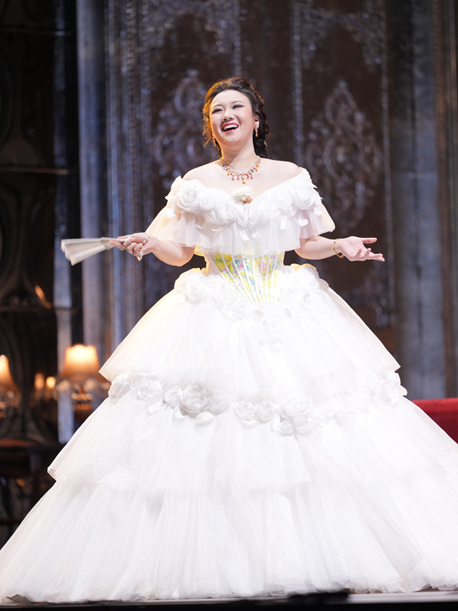 各地的舞臺上涌現出無數個版本的歌劇《茶花女》,而豫版《茶花女》的舞臺進行了“守正創新”的藝術創作。舞美設計以19世紀巴黎為原型,融合洛可可風格與現代多媒體技術。投影與實景道具相結合,既還原了法國貴族社會生活的奢華場景,又通過光影變幻呈現《飲酒歌》等經典場景的現代詮釋,令觀眾身臨其境。強烈的舞臺表演感染力帶給觀眾沉浸式觀演體驗,每一場演出都像是一場穿越時空的浪漫之旅。這部經典劇目,以"本土力量+國際水準"的模式,打造出兼具藝術深度與中原特色的舞臺呈現。