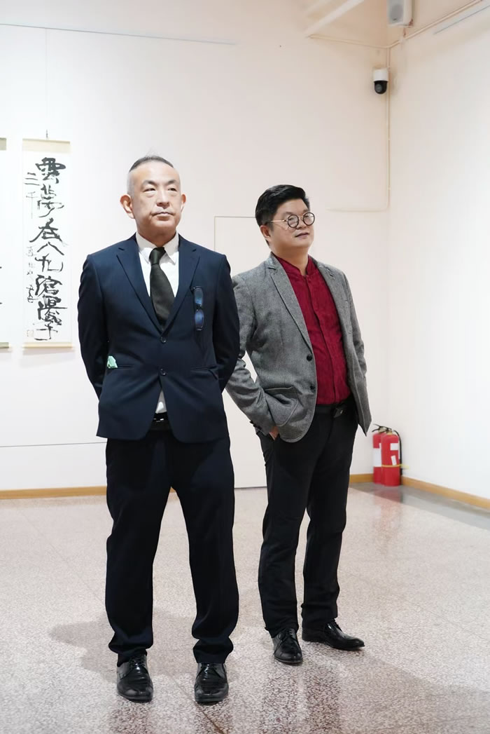 本次展覽的兩位主角——王清州與松宮貴之,分別來自中國和日本 ,他們在書法領域都成績斐然,卻風格各異。王清州作為當代藝術家中融合中西藝術精髓的代表,以中國傳統藝術為根基,在書法創作中融碑帖之骨與文人畫之境,隸書的典雅與行草的飄逸兼具,秉持“以書載道”理念,將對自然與人文的熱愛融入筆墨之中 。而松宮貴之被譽為日本當代書道革新者,他打破書法平面局限,將水墨與空間裝置結合,賦予文字立體生命力,其作品充滿“禪意的現代性表達”,以極簡視覺語言探索存在與虛無的哲學命題。