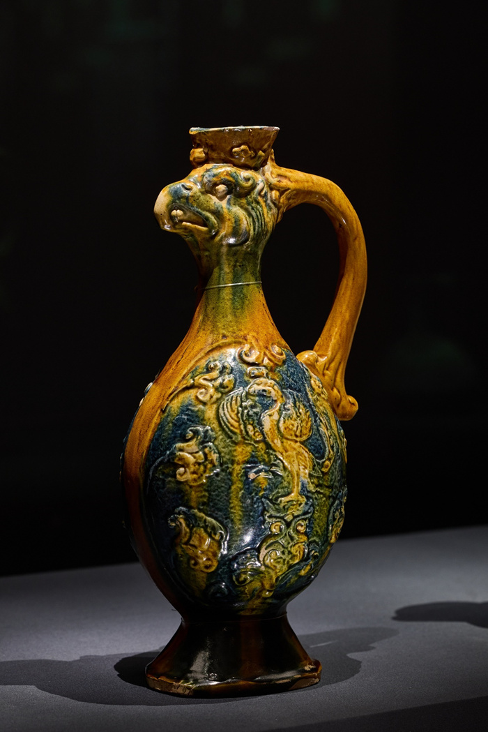 鳳首壺 唐(618–907年)三彩釉陶 圖片來源:舊金山亞洲藝術博物館