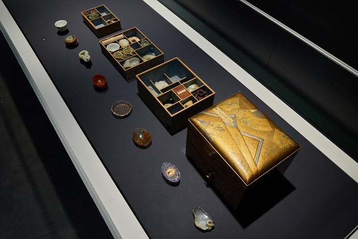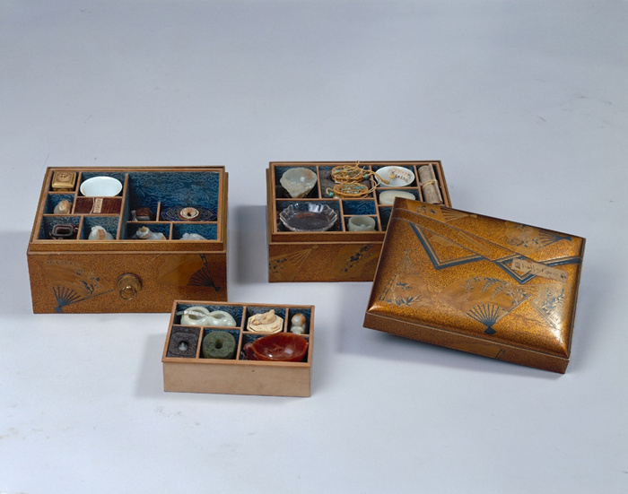 多寶匣組裝于清代(1644–1911年)匣:金漆;內含文物:玉器、瑪瑙、蜜蠟等 圖片來源:香港故宮文化博物館