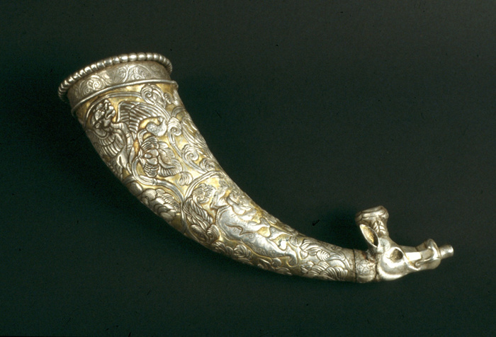 角形杯 中亞或吐蕃,八世紀早期銀鎏金 圖片來源:克利夫蘭藝術博物館