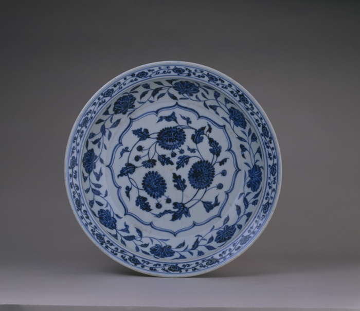 纏枝菊蓮紋盤 江西景德鎮御窯廠明永樂(1403?1424年)青花瓷 圖片來源:故宮博物院