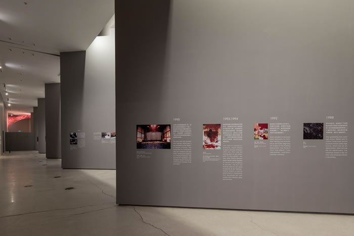 值得一提的是,展覽還通過文獻圖片、影像資料等內容系統梳理了鹽田千春的藝術實踐與創作歷程——作為日本人,她赴澳洲交換學習,從此突破對油畫表達方式的困境與沮喪,開啟了身體創作的行為之路;后赴德國,師從阿布拉莫維奇與瑞貝卡·霍恩,一步一步走入全球當代藝術視野,走向沉浸式的大型空間裝置。而始終不變的,是藝術家對跨國身份的自我認同與思考,對肉身與靈魂、現實與虛無、生死與永恒的持續追問。而在這一自我輸出和療愈過程中,鹽田千春也在叩問著觀者: