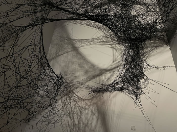《多重現實》,鹽田千春,2025,綜合材料,尺寸可變(“靜寂之空”,紅磚美術館展覽現場,2025)