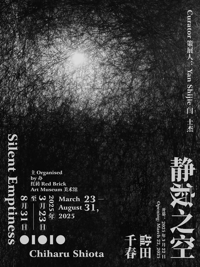 近日,籌備五年之久的鹽田千春(Chiharu Shiota)大型個展"靜寂之空"(Silent Emptiness)在紅磚美術館開幕。展覽以"纖維為經、舊物為緯",在紅磚美術館獨特的"東方園林×西方建筑"空間中,構建出物質消逝與精神永恒并置的當代藝術樣本。不僅打造出藝術家職業生涯中的重要里程碑,更將美術館轉化為一座獨特的試驗場——鹽田千春將藏地古建門庭、河北廢棄木船、北京當地的天然洞石和古舊中式家具等與其慣用的紅、黑色線繩在地重構,將"空"的禪意轉化為可觸可感的視覺場域。