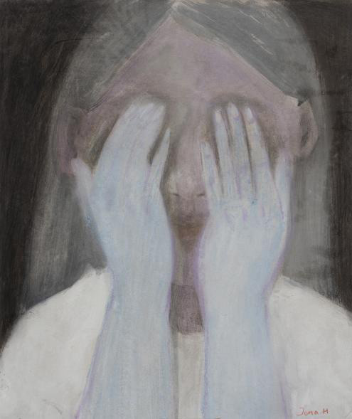 黃珺楠的《It Is Hard to Say》系列(2023—2024)以其獨特的水彩與粉筆技法在紙板上展開了一場關于內在凝視與自我表達的深刻探索。這一系列作品不僅展現了藝術家對自身情感的細膩挖掘,更通過視覺語言的形式,超越了語言的局限,揭示了人類心理狀態的復雜性與多變性。