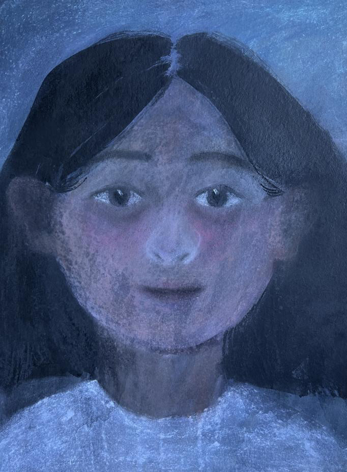 在視覺語言上,黃珺楠的作品展現出一種獨特的朦朧感與流動性。水彩的滲透性與粉筆的柔和質感相結合,使畫面呈現出一種易逝的、模糊的特性。這種特性與情感的瞬息萬變形成了巧妙的呼應。美國文化評論家蘇珊·桑塔格(Susan Sontag)在《論攝影》中指出,視覺藝術不僅僅是現實的再現,更是一種情感與思想的介入(Sontag, 1977)。黃珺楠的作品正是這種介入的絕佳例證。她通過水彩與粉筆的材質特性,將情緒與畫面融為一體,創造出一種既脆弱又深邃的視覺體驗。這種體驗不僅讓觀者感受到情感的流動,也引發了對自我內心世界的反思。