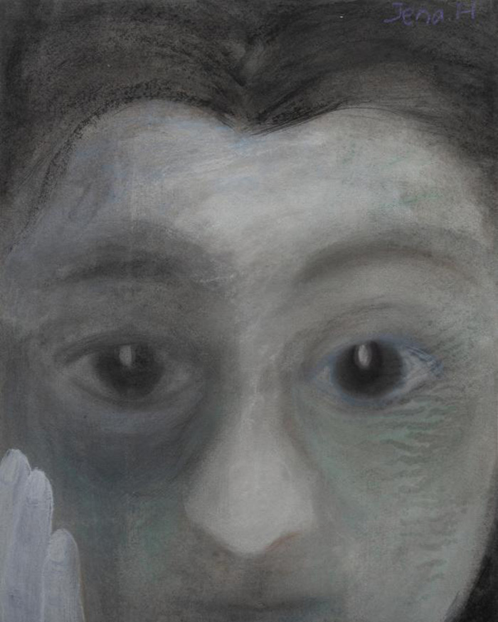 此外,黃珺楠的作品與雅克·拉康(Jacques Lacan)的“鏡像階段”理論形成了深刻的對話。拉康認為,鏡像階段是嬰兒首次通過鏡子認識到自我形象的關鍵時刻,這一過程既標志著自我認同的建立,也預示著自我異化的開始(Lacan, 1949)。在黃珺楠的作品中,鏡中的形象并非完整的自我,而是被水彩與粉筆打散、模糊、重組的一種視覺隱喻。這種處理方式不僅突出了情緒的不穩定性,也揭示了藝術家對“難以言說”之感的深刻理解。鏡中的形象仿佛是一個破碎的自我,既熟悉又陌生,既真實又虛幻,這種矛盾性正是拉康理論中自我認同與異化的雙重性的體現。