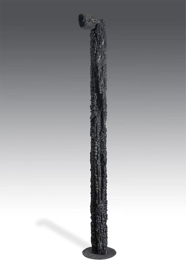 梅法釵,《燼》系列3,火燒木、鐵、碳渣,350×50×50cm,2018?梅法釵工作室,布里詩畫廊