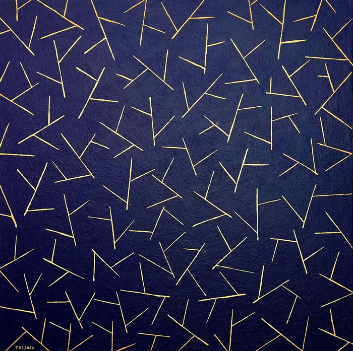 他的《森林記憶》系列作品的線條剛直有力,得益于他練習了20多年的書法基礎。在當代藝術的繽紛世界里,“滴畫法”、“點畫法”、“弧線畫法”花樣繁多。而他則獨辟蹊徑,選擇了直線畫法。雖說看似簡約直白,少了幾分曲徑通幽的委婉,但大道至簡,每一條硬朗的直線里,都藏著他對世界的別樣洞察、對情感的冷峻表達。他不愿隨波逐流,而要在當代藝術的版圖上開拓出一方屬于他自己的天地。