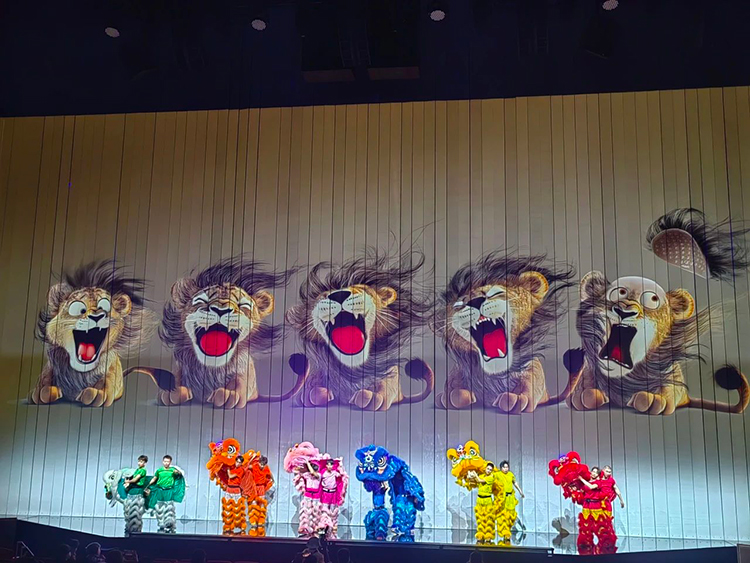 在《美獅·光芒》中,音響動態捕捉技術精準捕捉舞獅表演的每一個動作,使音效的節奏變化與獅子的騰躍、翻滾完美同步,每一次跳躍、每一次落地的力量都直接傳遞到觀眾心間。技術不再是冰冷的輔助,而成為藝術表達不可或缺的組成部分。