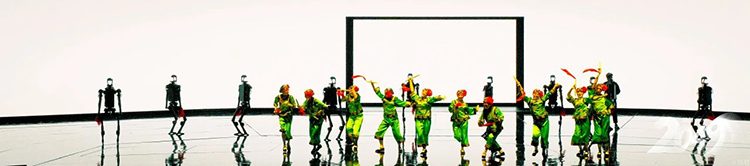 而《岔口·面具》則展示了傳統與現代聲音元素的過渡。金少剛解釋道:“該炫的時候炫,該返璞歸真的時候必須返璞歸真?!惫澞壳鞍攵问蔷﹦ 度砜凇返谋硌?,后半段轉換為現代面具舞。為了實現聲音的藝術過渡,音響團隊在多通道L-ISA系統中,通過環繞聲加入電子音效的混響處理,使傳統京劇鑼鼓點能夠與后續的電子音樂自然融合。