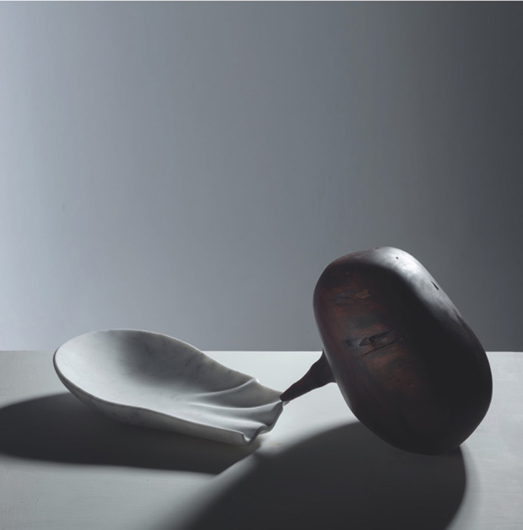 在Lorenzo Vignoli的冷峻大理石與周圓緣Yaman Chua的溫潤木雕之間,一場關于時間本質的宇宙詩學正以月相為節拍徐徐展開。這對創作者以天體力學為共同語法,在材料對抗中重寫時間敘事。Lorenzo Vignoli的將大理石解構為地質紀年的橫截面,層疊的礦物沉積如被壓縮的時光琥珀;周圓緣YamanChuau嵌入的薄木構件以木紋的裂變瞬間與大理石的冷凝軌跡在此形成量子糾纏,恰似海德格爾所言“時間并非流逝,而是綻放”。當觀眾繞行這件裝置時,木質“月影”隨角度位移在大理石表面投下變幻的光痕,物理性的時空彎曲由此升華為詩意的存在之思。